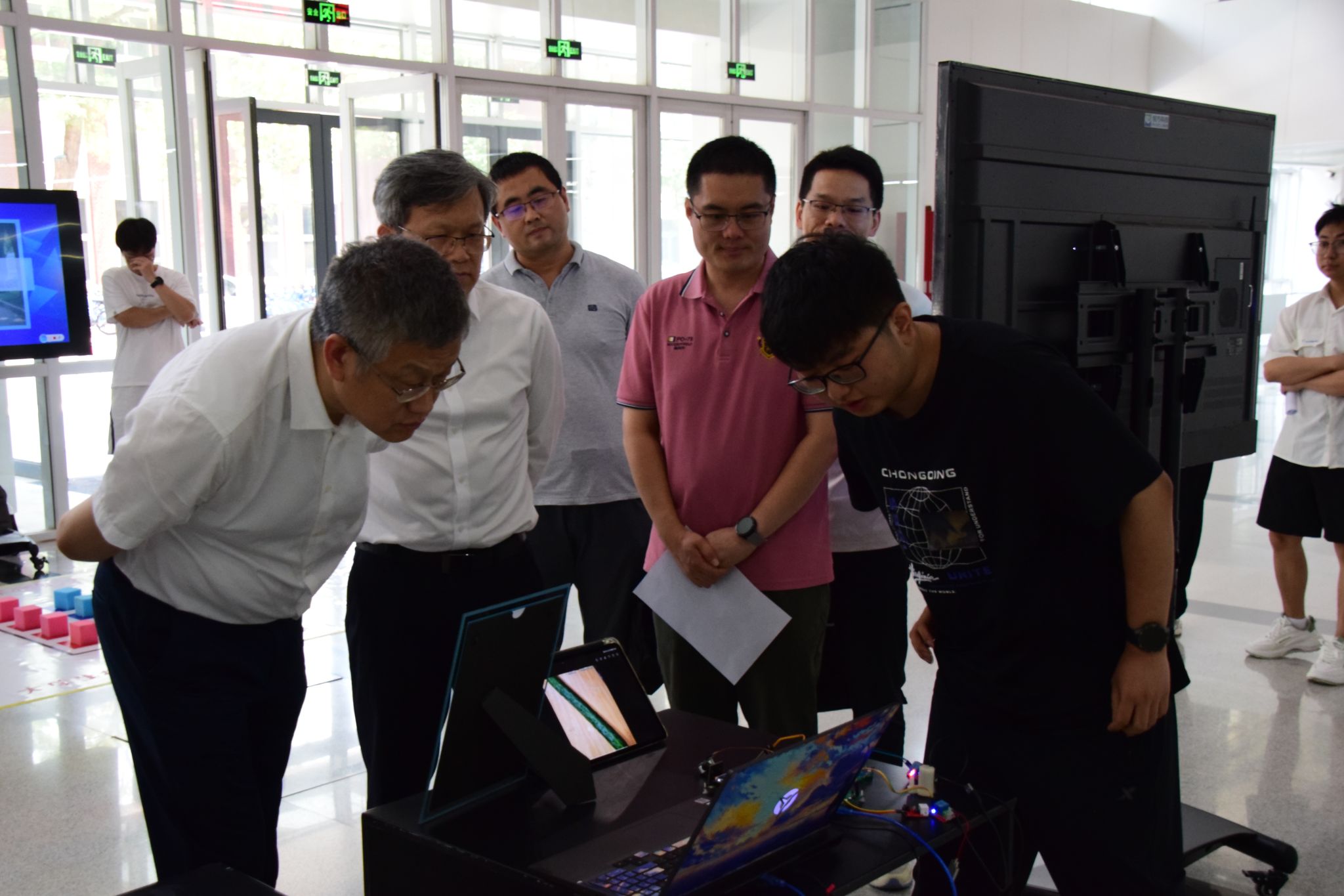 于工程实训中心B座一楼大厅举办新工科样板间创新成果展暨2025届优秀毕设作品展。校党委副书记、校长郑清春,校党委副书记李靖,副校长王劲松莅临参观指导,教务处处长杨慧,副处长周晨、孔超,体美劳中心副主任刘鑫琼到场观摩,禁漫