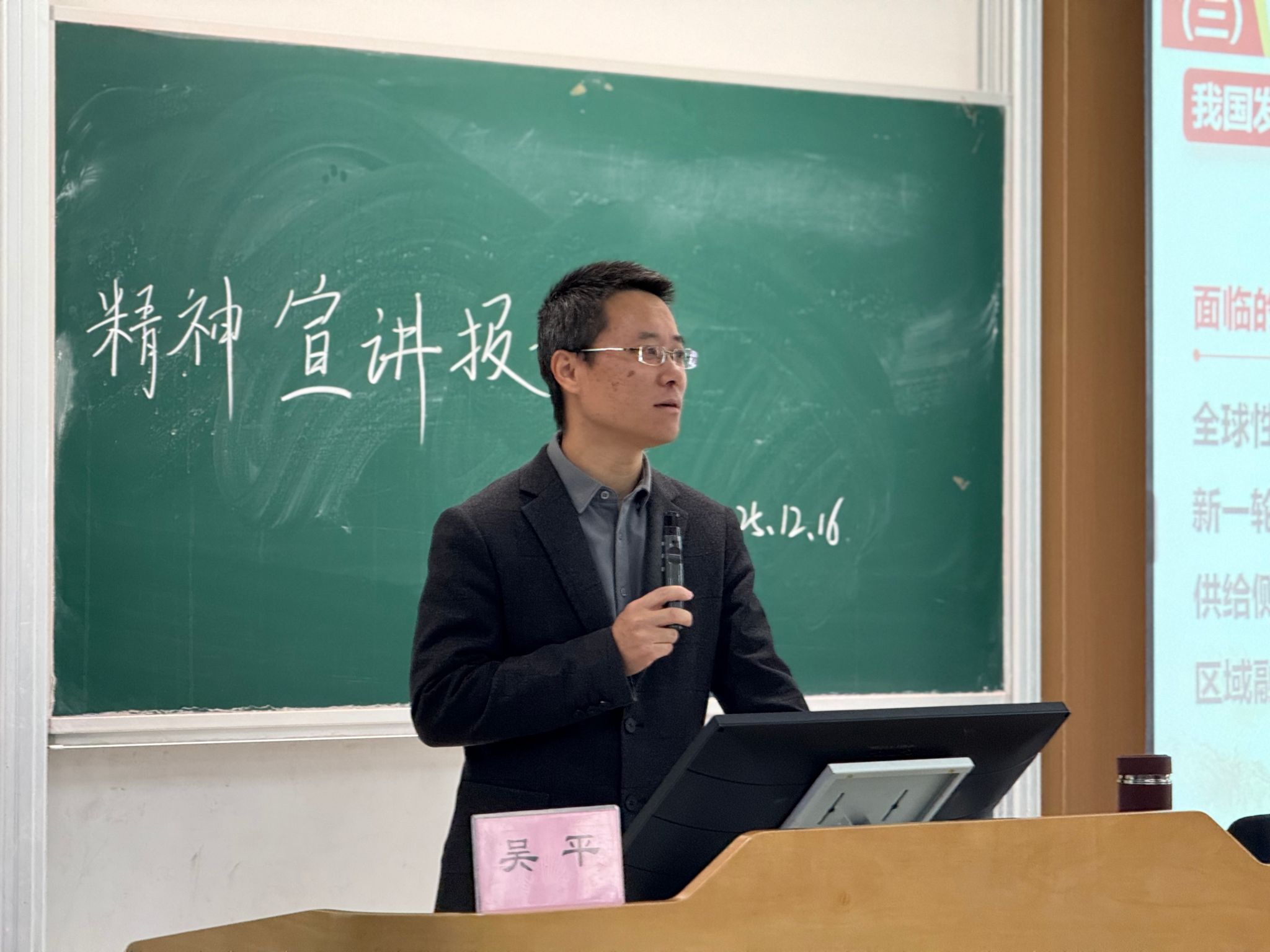 为深入学习宣传贯彻党的二十届四中全会精神,推动党中央重大决策部署在学院落地生根,根据学校党委有关要求结合学院工作实际,12月16日下午,禁漫 党委书记吴平,党委副书记、院长王冬霞党委副书记、副院长兼纪委书记程君,党委委员、副院长董建分别面向学院本科生、研究生开展党的二十届四中全会精神专题宣讲。