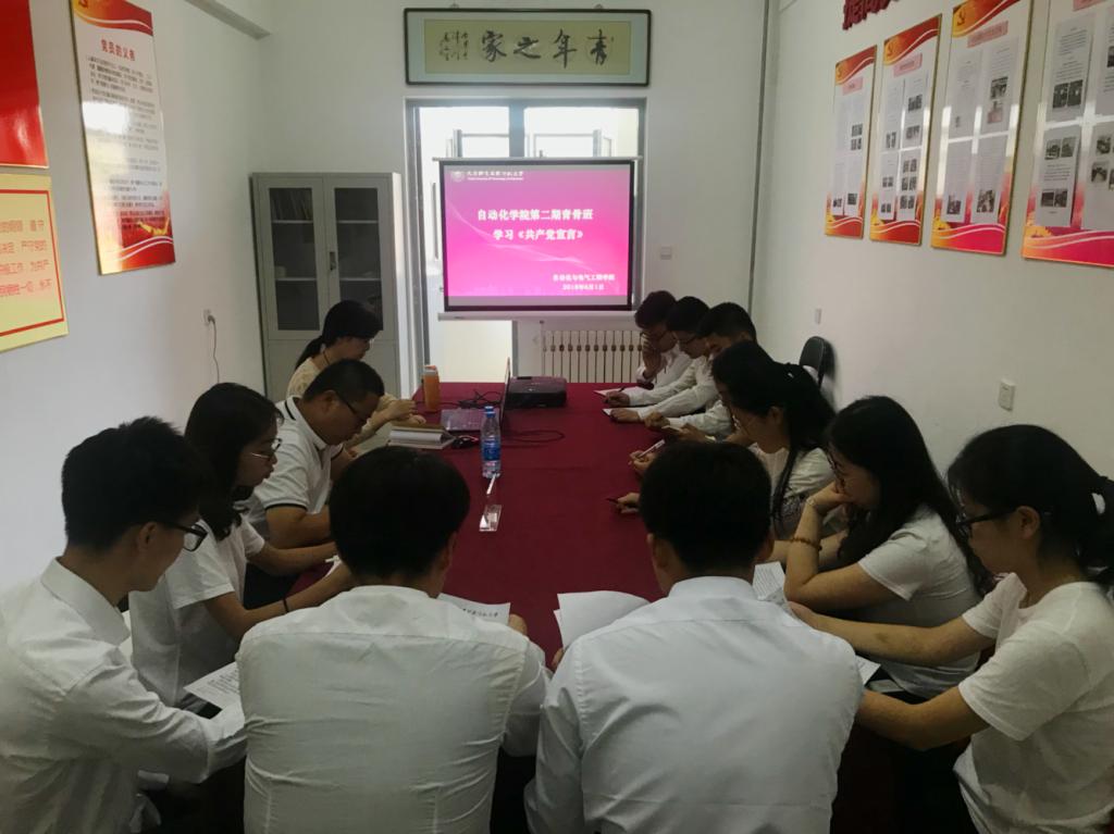 青骨班在党团活动室开展学习《共产党宣言》的交流活动,社科部郭清老师、学院团委书记仲伟邦及青骨班全体成员参会。