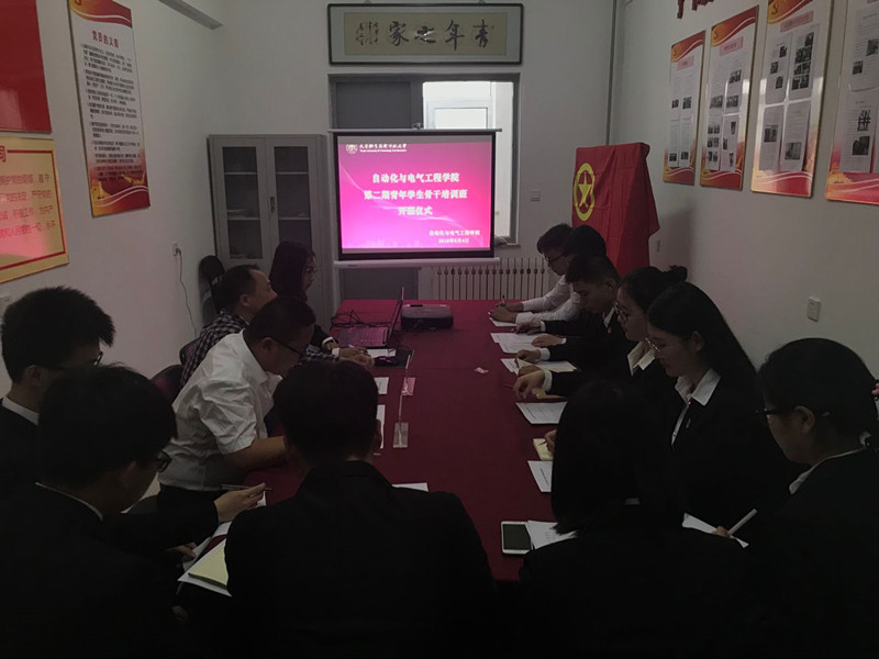 在学院党团活动室举行第二期青年学生骨干培训班开班仪式,院党委副书记李敏、团委书记仲伟邦和第二期青骨班学员参会。