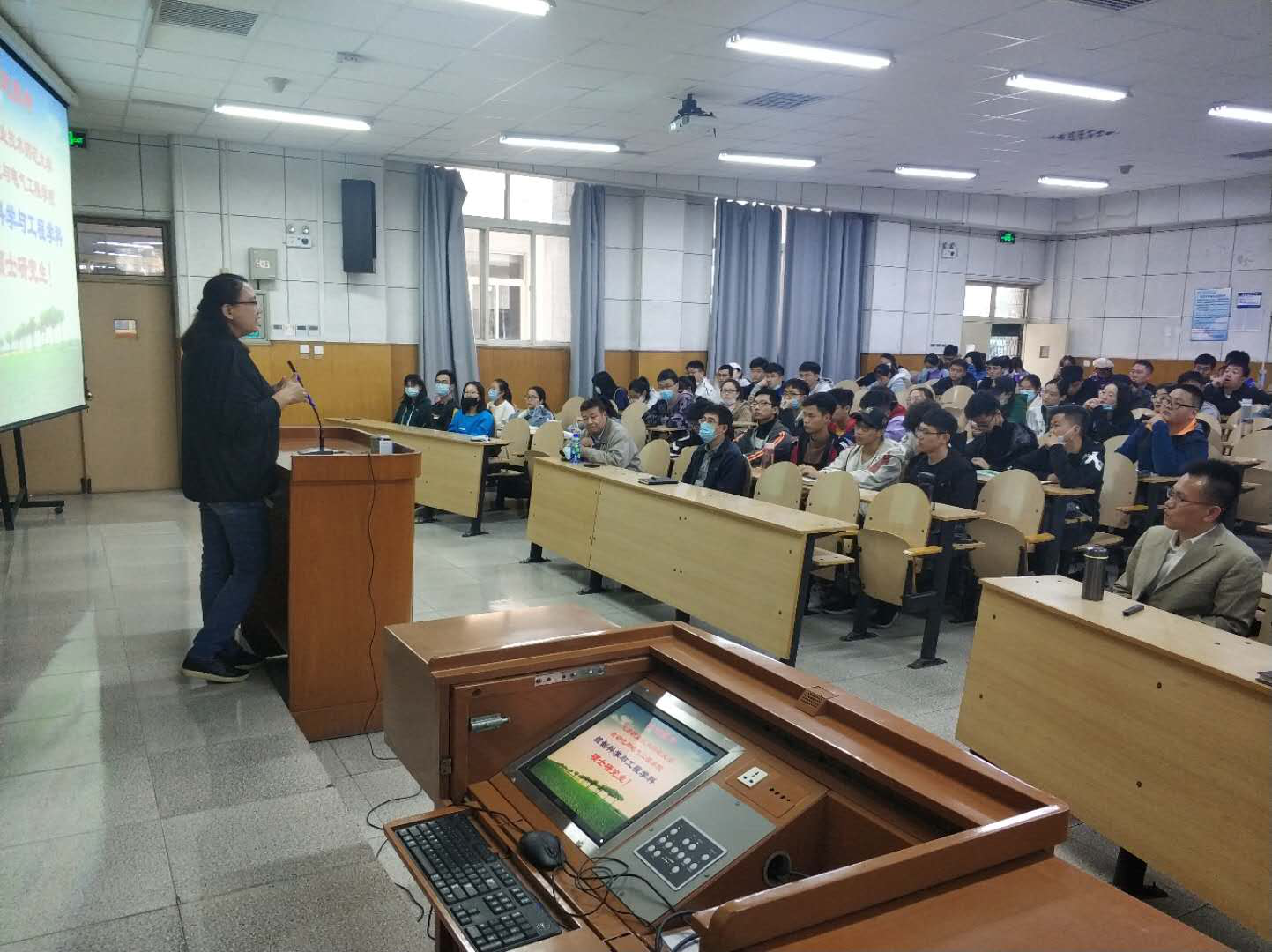 于10月17日为本科生举办了2021年研究生报考宣讲会。学院副院长赵丽,教师代表储健、车艳秋、耿立辉,研究生秘书孙淼、田欣以及百余名本科生参加了宣讲会。