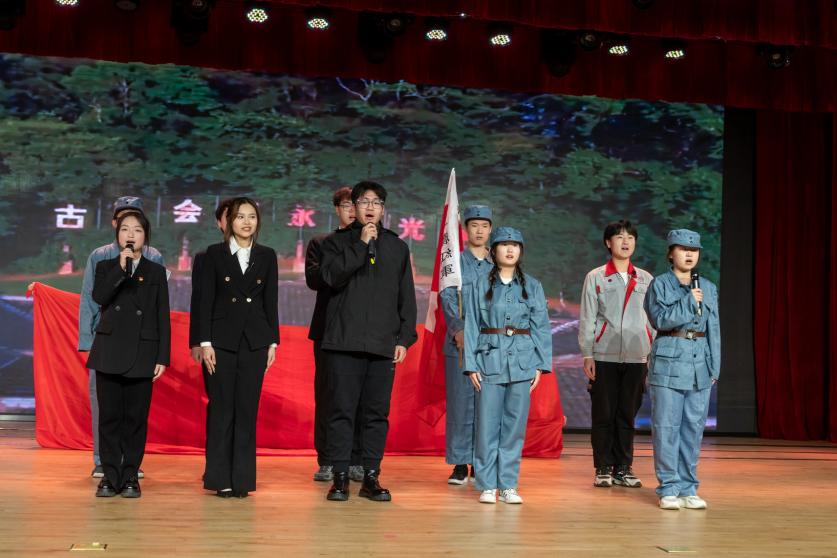 辅导员、宣讲团指导教师张港以《中华民族先锋队与中华民族共同体》为题,先后为各支部党员与入党积极分子开展党课教育;走进社区,宣讲团为小朋友们带来红色教育,激发爱国情怀;线上线下融合,“延安火种延续理论宣讲团”联合多地高校举办红色精神线上宣讲,宣传农特产品,助力革命老区在新时代的新发展。宣讲团在舞台展演活动中,以朗诵、歌舞、舞台剧等方式沉浸式展演,生动展现从长征出发到新时代新征程的辉煌历程。此次宣讲之旅的成功,不仅增强了青年学子的红色文化自信与师范技能,更为学校的红色文化传承与创新工作注入了强劲动力。