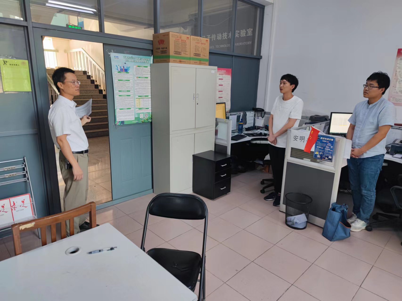 7月10日至16日期间,学院开展暑假前安全隐患大检查大排查。学院党委书记吴平、实验实训中心主任胡山、学院安全员李猛组织对学院内所有办公用房、实验实训教室、科研用房、设备周转室、库房等部位进行大检查大排查,现场明确暑期实验实训室安全管理要求,对存在隐患问题的实验室、科研用房等部位提出立即整改要求,进一步消除安全隐患。