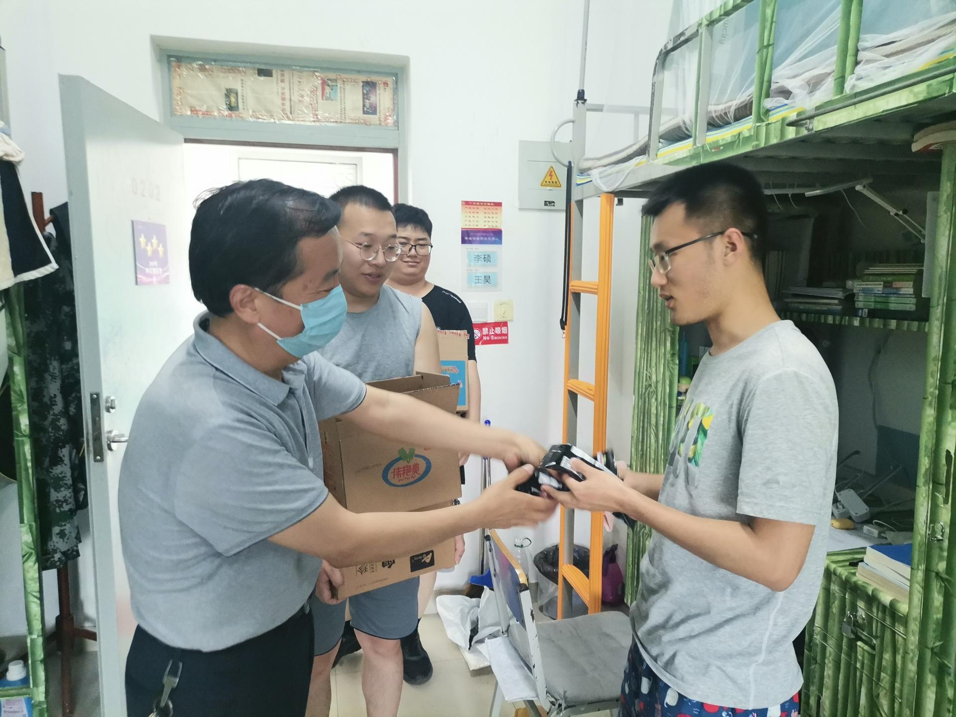 还有700余名学生因四六级考试、中级工考试、科研任务等原因未能离校与家人团聚,共度端午佳节。为了缓解在校学生的思乡情绪,考虑到近几日天气炎热,自动化学院所有住校领导、辅导员深入宿舍为700余名在校学生送去防暑降温慰问品,送去端午祝福。