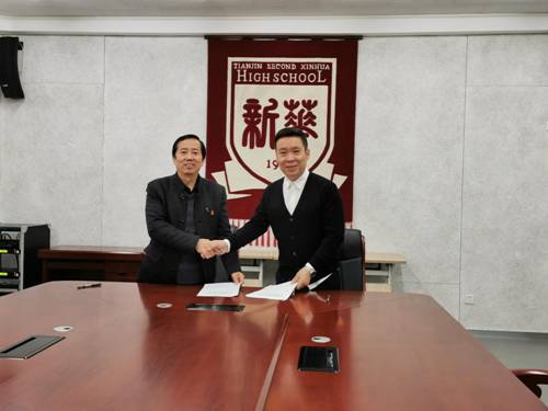 11月24日,合作协议签约仪式在天津市第二新华中学会议室举行。第二新华中学校长马建伟,禁漫