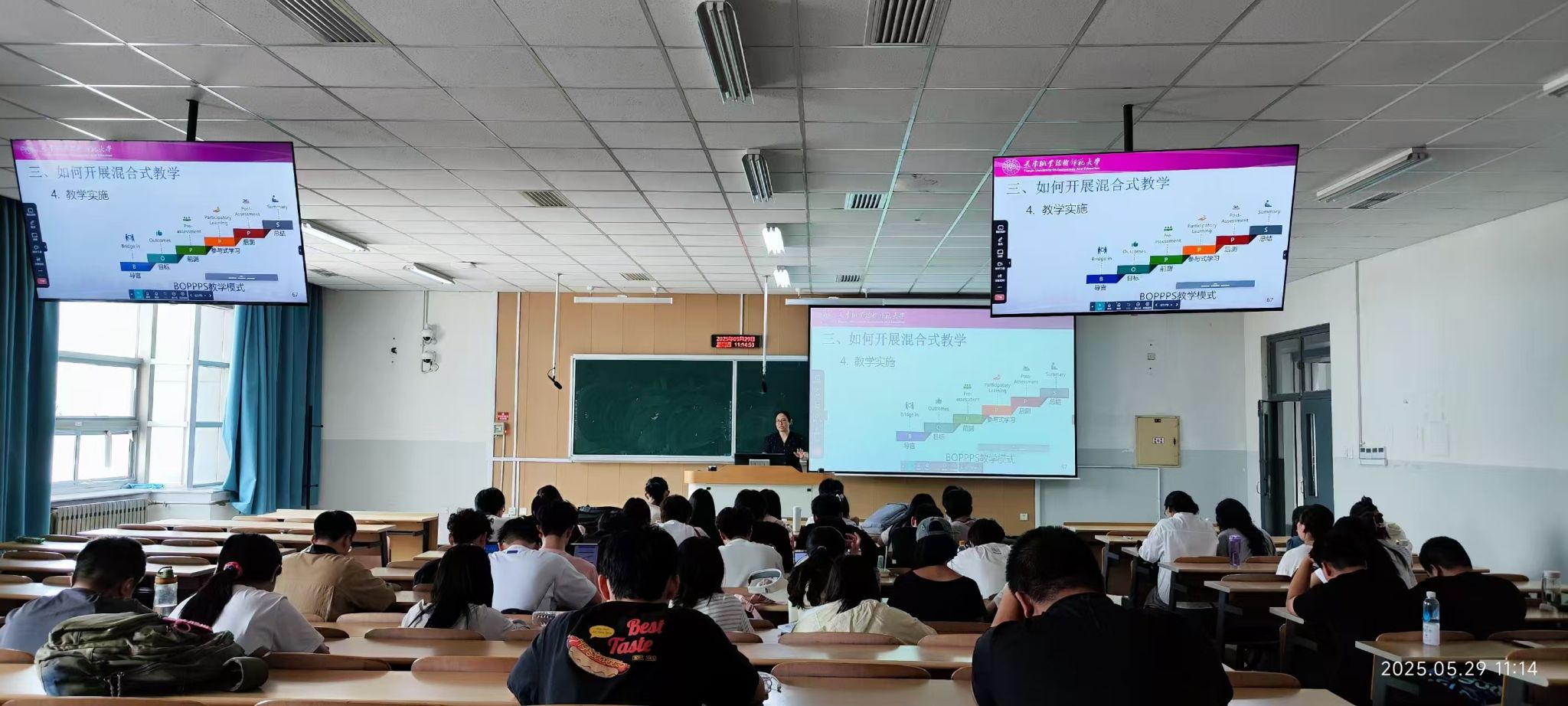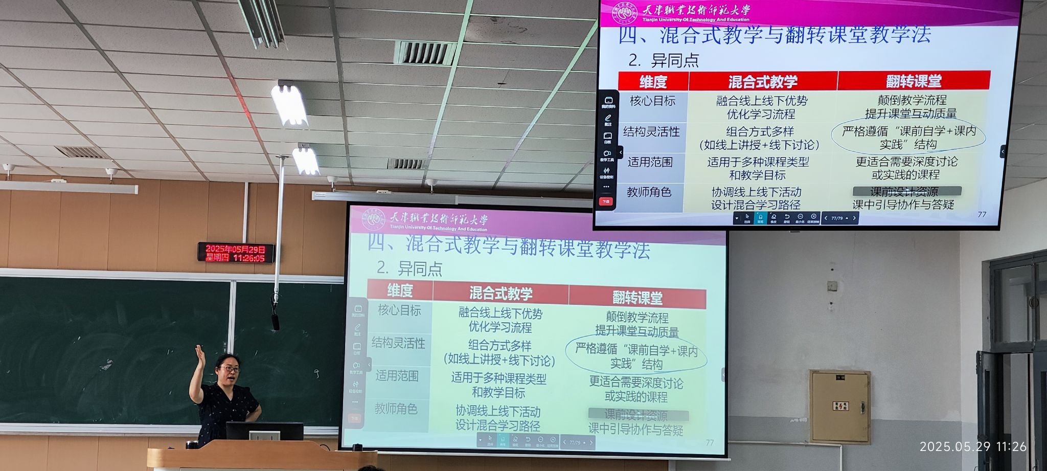 5月27日、5月29日,张翠敏分别开展《模拟电子技术》课程中“反馈的概念及组态判别”内容、《学科教学法》课程中“从微课到混合式教学实践”内容的公开示范课。课堂上,张翠敏以其深厚的专业知识底蕴深度融合信息化手段(翻转课堂、虚拟仿真、实时测评),采用多元化互动教学方法(BOPPPS、案例、合作、错误驱动、游戏化)和线上线下混合式教学的前沿理念与实践方法。课程融合理论讲解、案例分析与实践指导,全面践行OBE教学理念,注重技术赋能与能力培养。