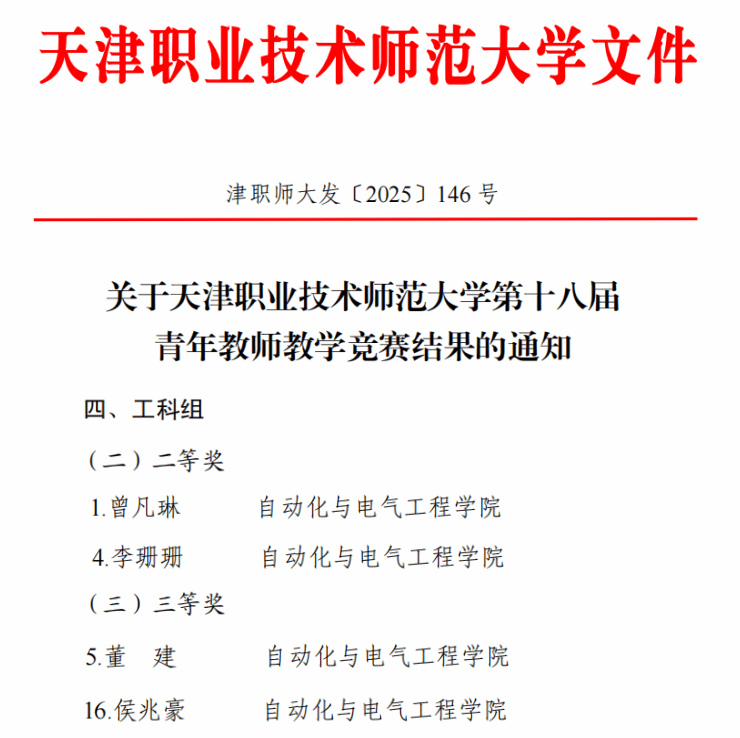 近日,禁漫 第十八届青年教师教学竞赛圆满落幕。禁漫 青年教师在此次竞赛中表现优异,斩获多项荣誉。教师曾凡琳、李珊珊获工科组二等奖,董建、侯兆豪获工科组三等奖,充分展现了禁漫 青年教师扎实的教学功底和卓越的教学风采。