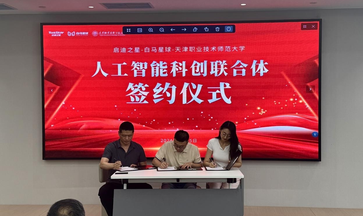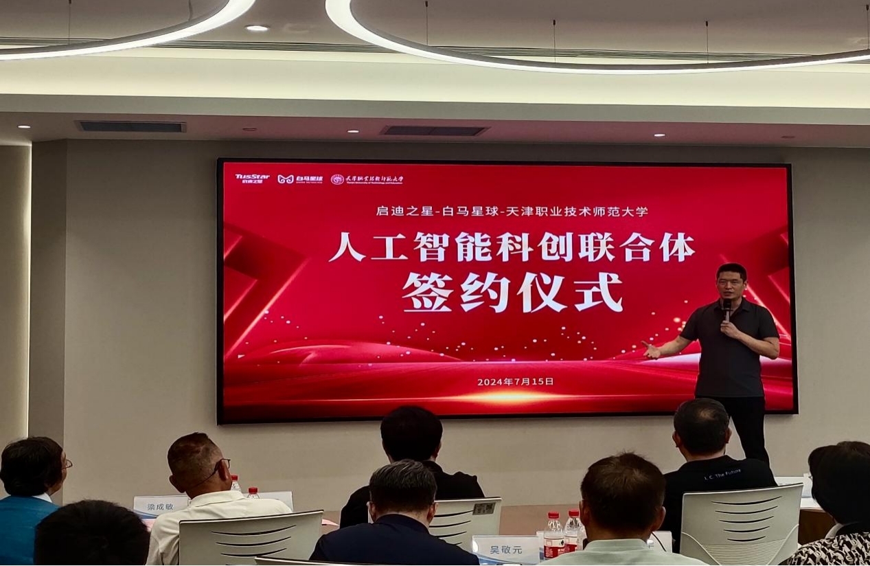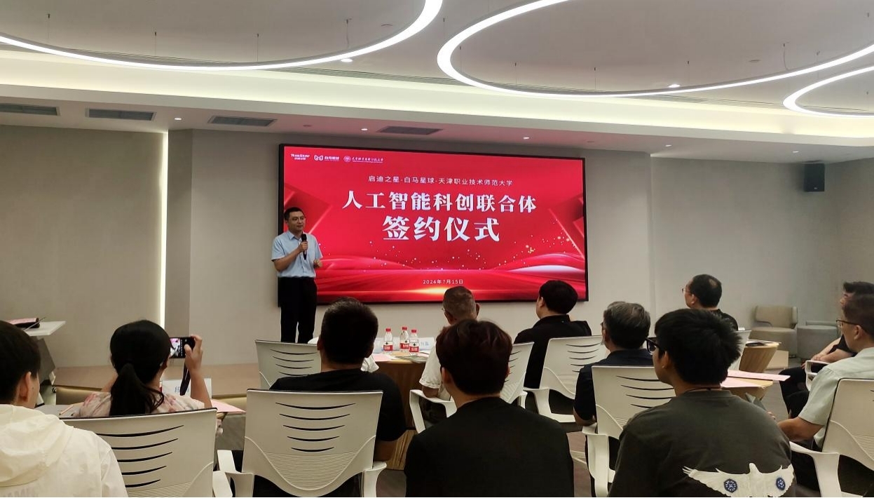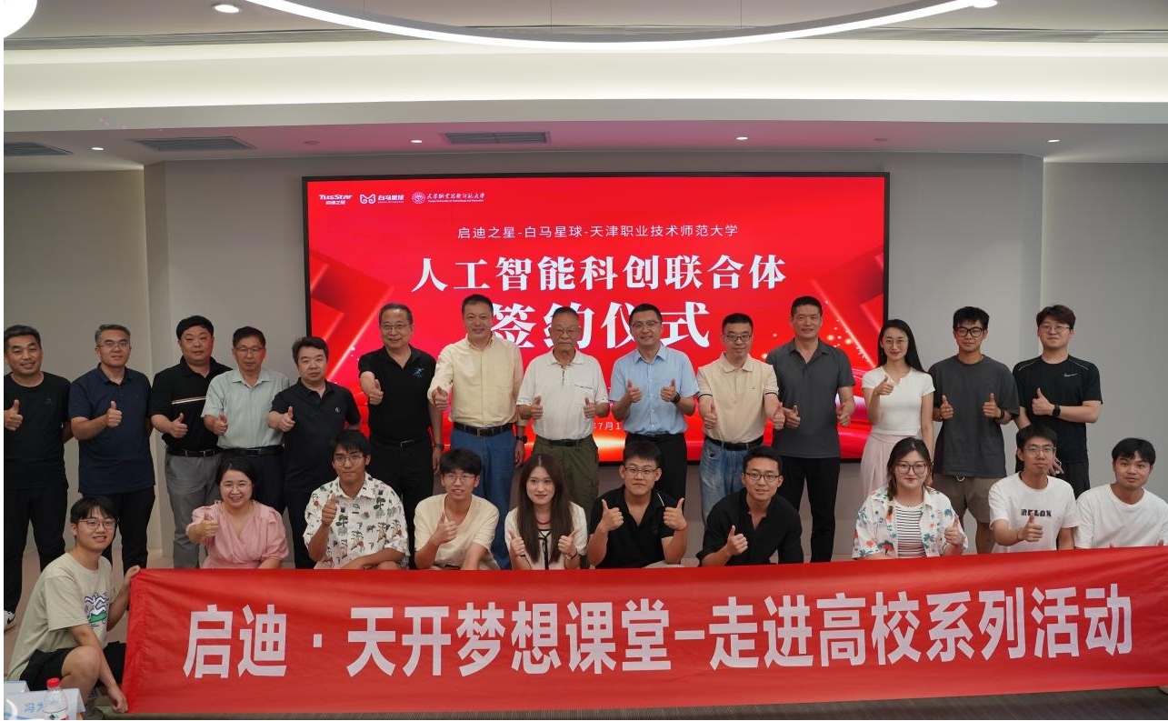 与启迪之星(天津)科技企业孵化器有限公司、天津白马星球智能科技有限公司共同举办人工智能科创联合体签约仪式暨启迪·梦想课堂第十期活动在南开区天开高教科创园核心区举行。天津天开发展集团有限公司副总经理王杨,天津市计算机学会总顾问路平、理事长孟昭鹏,天津市人工智能学会理事长、天津大学人工智能学院院长胡清华,天津白马星球智能科技有限公司(以下简称白马星球)董事长汪洋,启迪之星(天津)科技企业孵化器有限公司(以下简称启迪之星)副总经理陈喆,禁漫