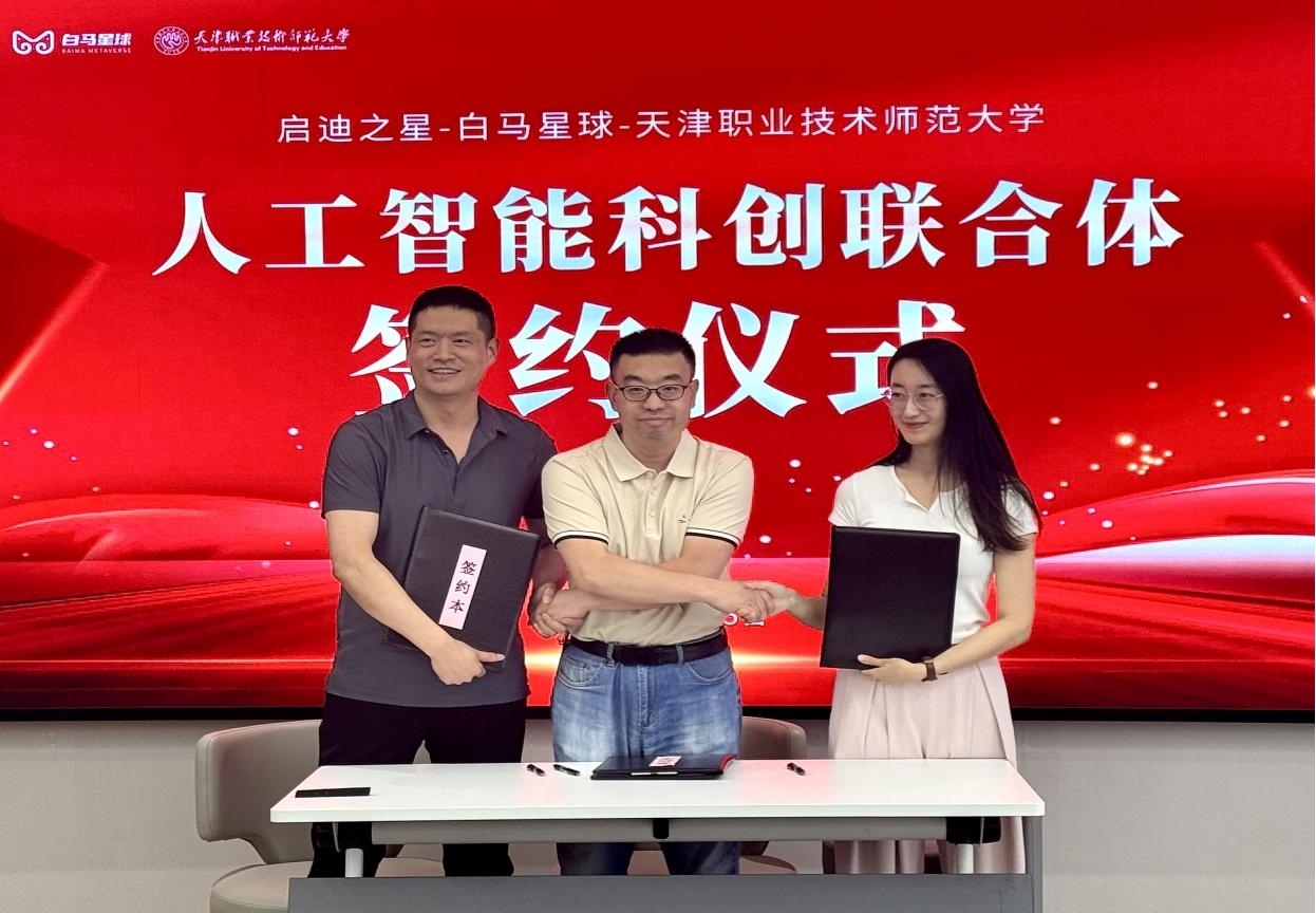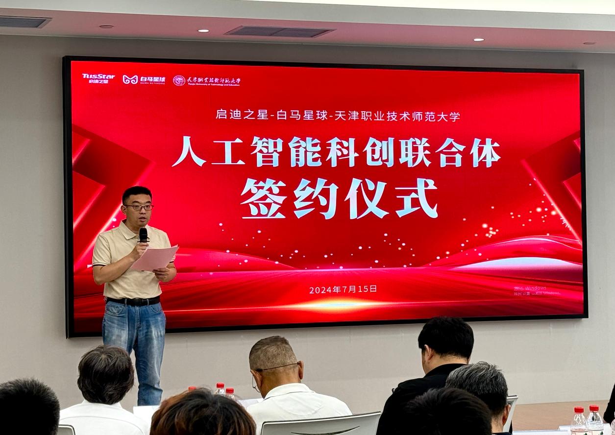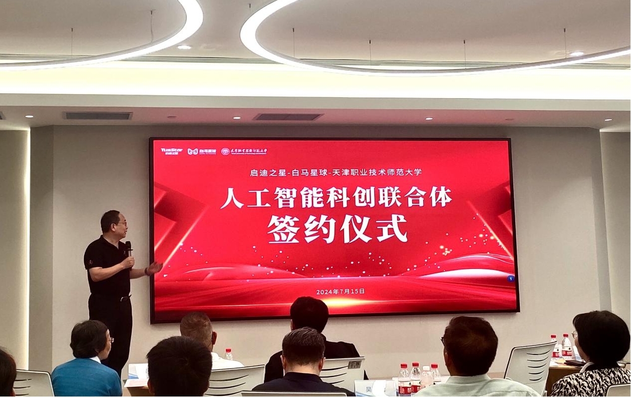 与启迪之星(天津)科技企业孵化器有限公司、天津白马星球智能科技有限公司共同举办人工智能科创联合体签约仪式暨启迪·梦想课堂第十期活动在南开区天开高教科创园核心区举行。天津天开发展集团有限公司副总经理王杨,天津市计算机学会总顾问路平、理事长孟昭鹏,天津市人工智能学会理事长、天津大学人工智能学院院长胡清华,天津白马星球智能科技有限公司(以下简称白马星球)董事长汪洋,启迪之星(天津)科技企业孵化器有限公司(以下简称启迪之星)副总经理陈喆,禁漫