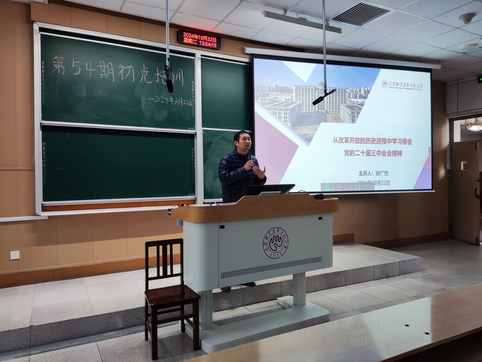 本次培训采取现场讲授、视频学习、实地参观、理论考核等多种形式。邀请我校马克思主义学院教师孙广杰老师为入党积极分子作主题为“从改革开放的历史进程中学习领会党的二十届三中全会精神”的专题宣讲;学院组织员刘会云、本科生第一党支部书记王珊、学院纪委委员及本科生第三党支部书记丁俊伍分别开展党的基本知识教育、理想信念教育、廉洁教育专题讲座;学生党员向秋林、敖嘉成结合自身经历讲微党课;为增强教育效果,学院组织学员参观学校行知园、炎培园,观看《横空出世》《高山下的花环》等爱国主义教育影片。