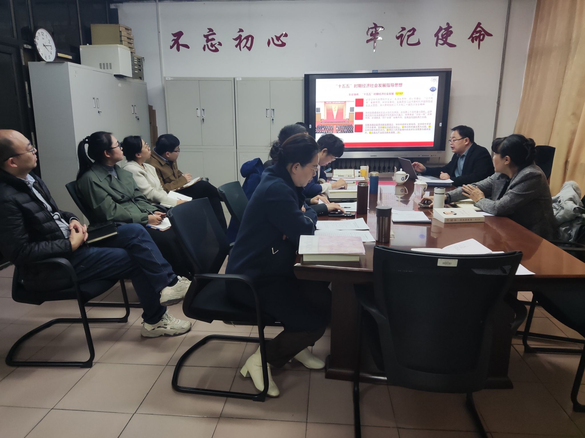 邀请天津市习近平新时代中国特色社会主义思想讲师团宣讲成员、我校马克思主义学院张水勇副教授做专题辅导,他系统梳理“十四五”时期我国发展取得的重大成就,详细阐述“十五五”时期经济社会发展的主要目标、战略任务和重大举措,结合天津和学校发展实际给出深刻启示,为学院落实全会精神提供了有力指导。学院处级干部紧扣学习主题,结合实际工作,逐一开展了学习体会交流。