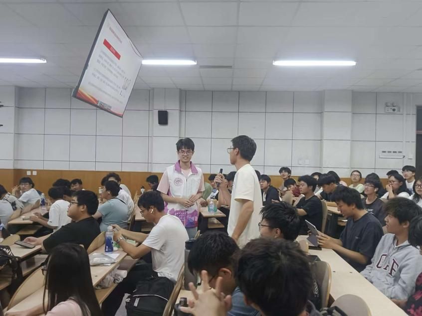 面向学院2024级新生举办国家资助政策宣讲会,传达资助政策的温暖与力量。本次活动由学生资助宣传大使李铭洋、彭瑞、张涵发起,学院学管会共同主办,学院辅导员刘娇主持,近200名学生参加活动。