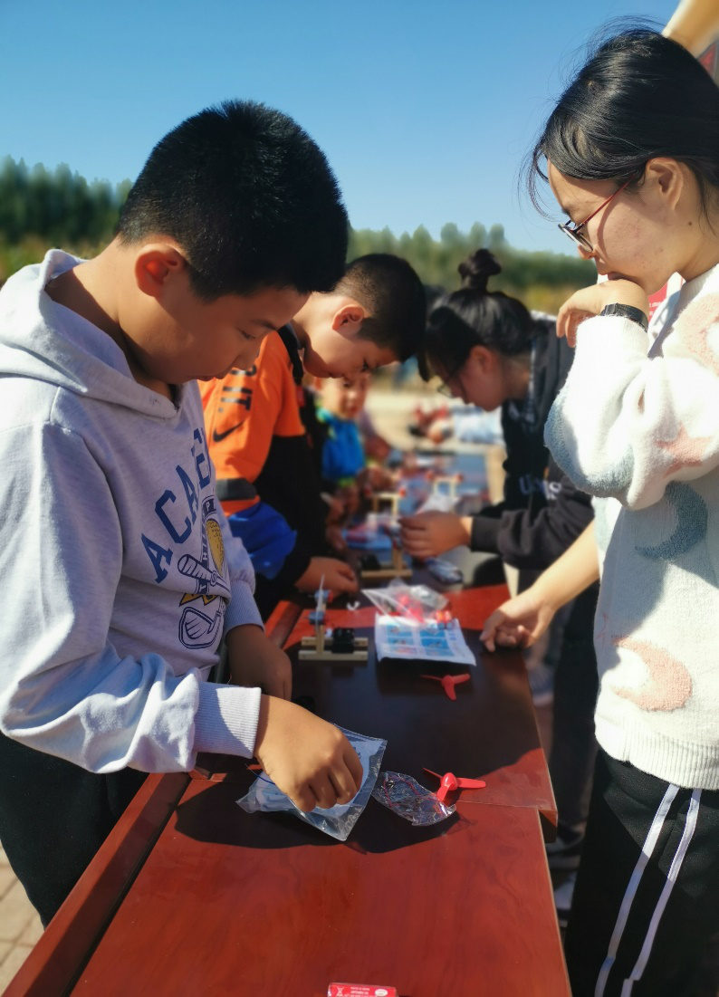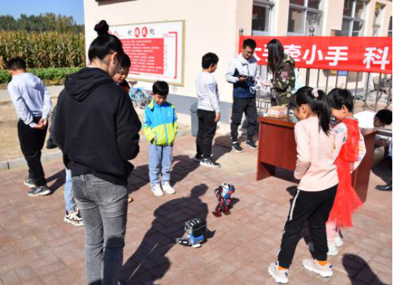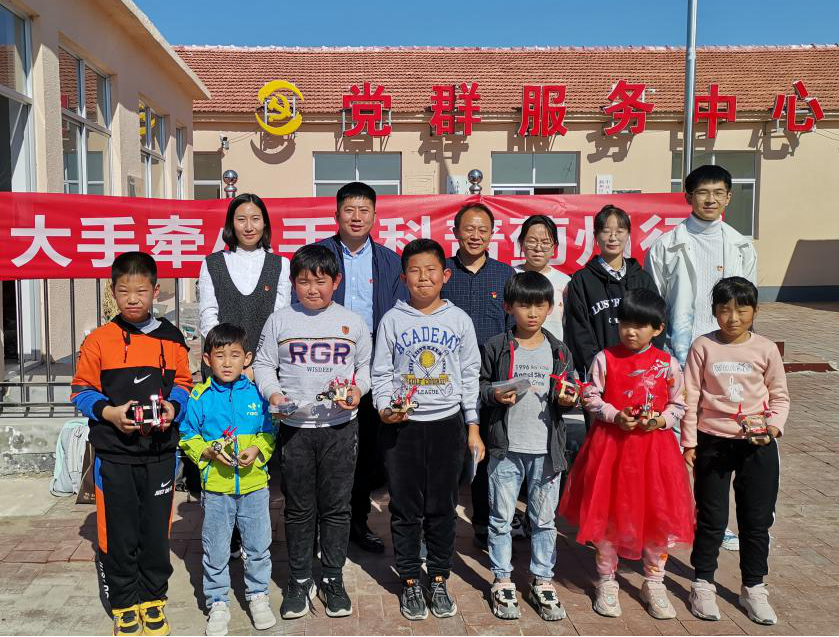 10月17日第七个国家扶贫日当天,项目组联合学校科研处、工程实训中心和我校驻蓟州区帮扶工作组,在蓟州区下仓镇金芦庄村开展“大手牵小手,科普蓟州行”实践活动。活动面向当地四、五年级小学生,精心打造创客科普课程,通过科普体验和实践制作培养学生的科学认知,激发学生科技学习兴趣。