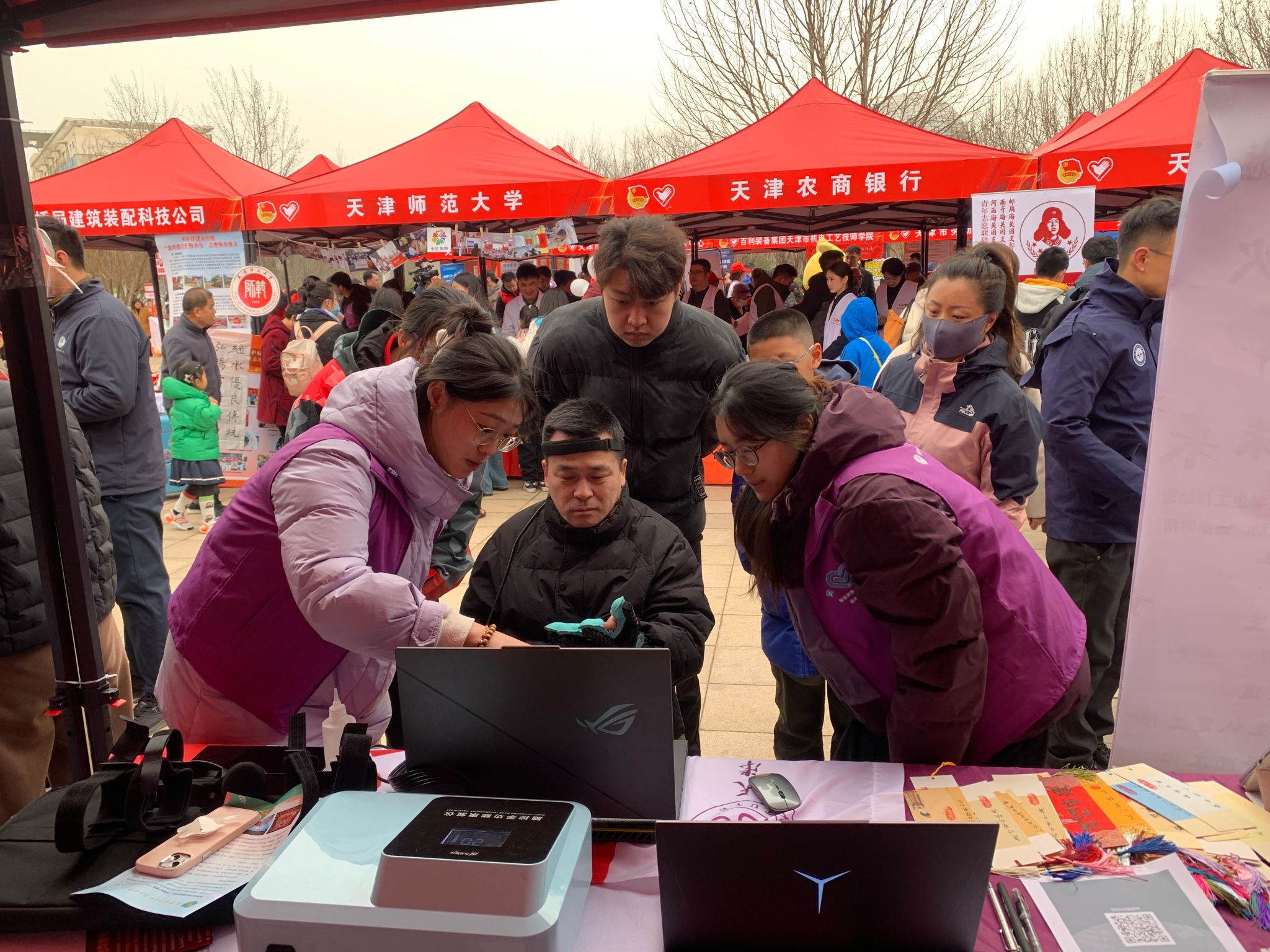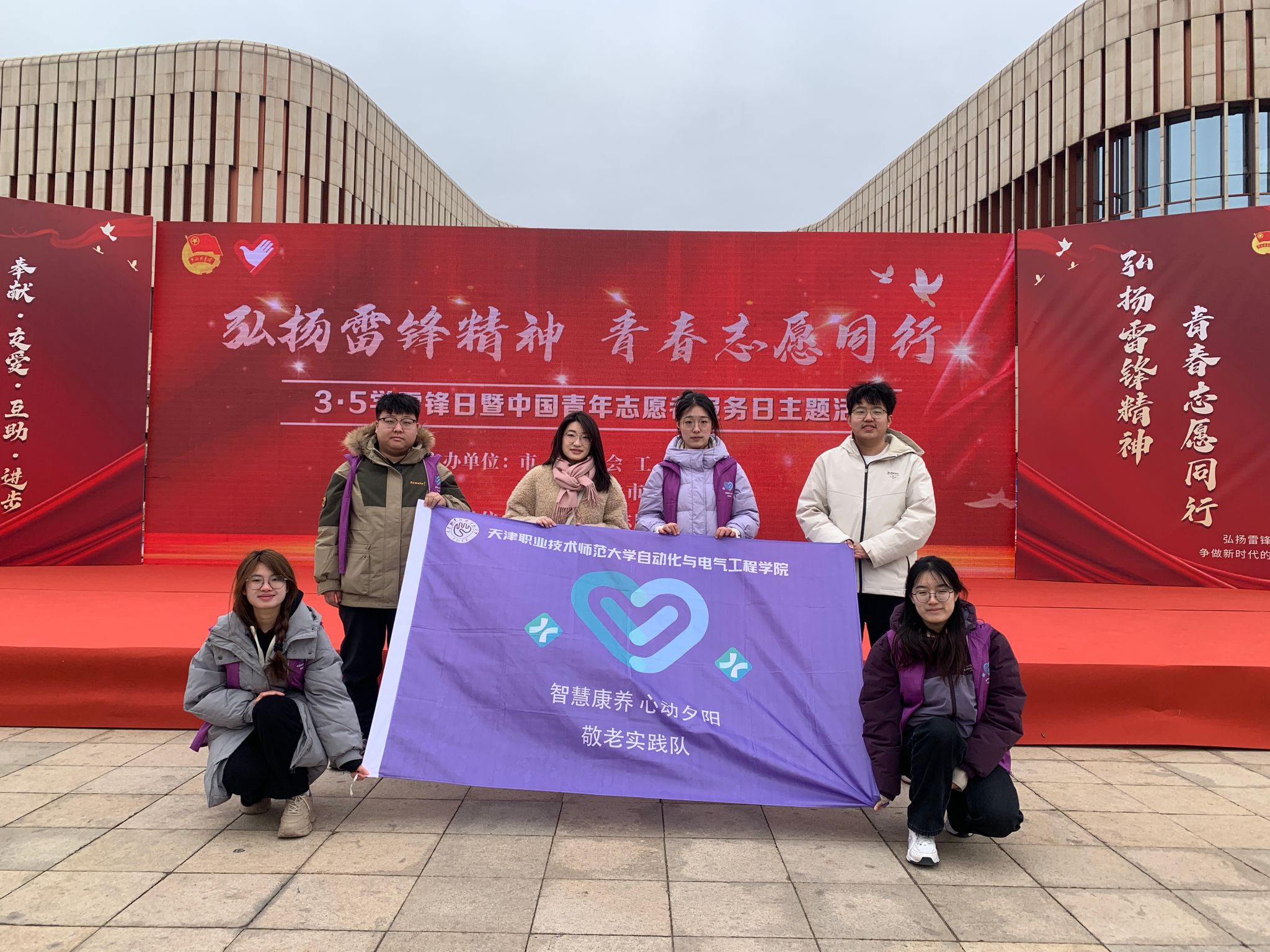“智慧康养 心动夕阳”敬老实践团联合我校智慧康养研究院、智慧康养科普基地、中国敬老与养老文化传承基地,携脑控康复手、上肢智能矫形训练器等科技成果,参加共青团天津市委主办的学雷锋主题示范活动,以科技力量践行新时代雷锋精神。