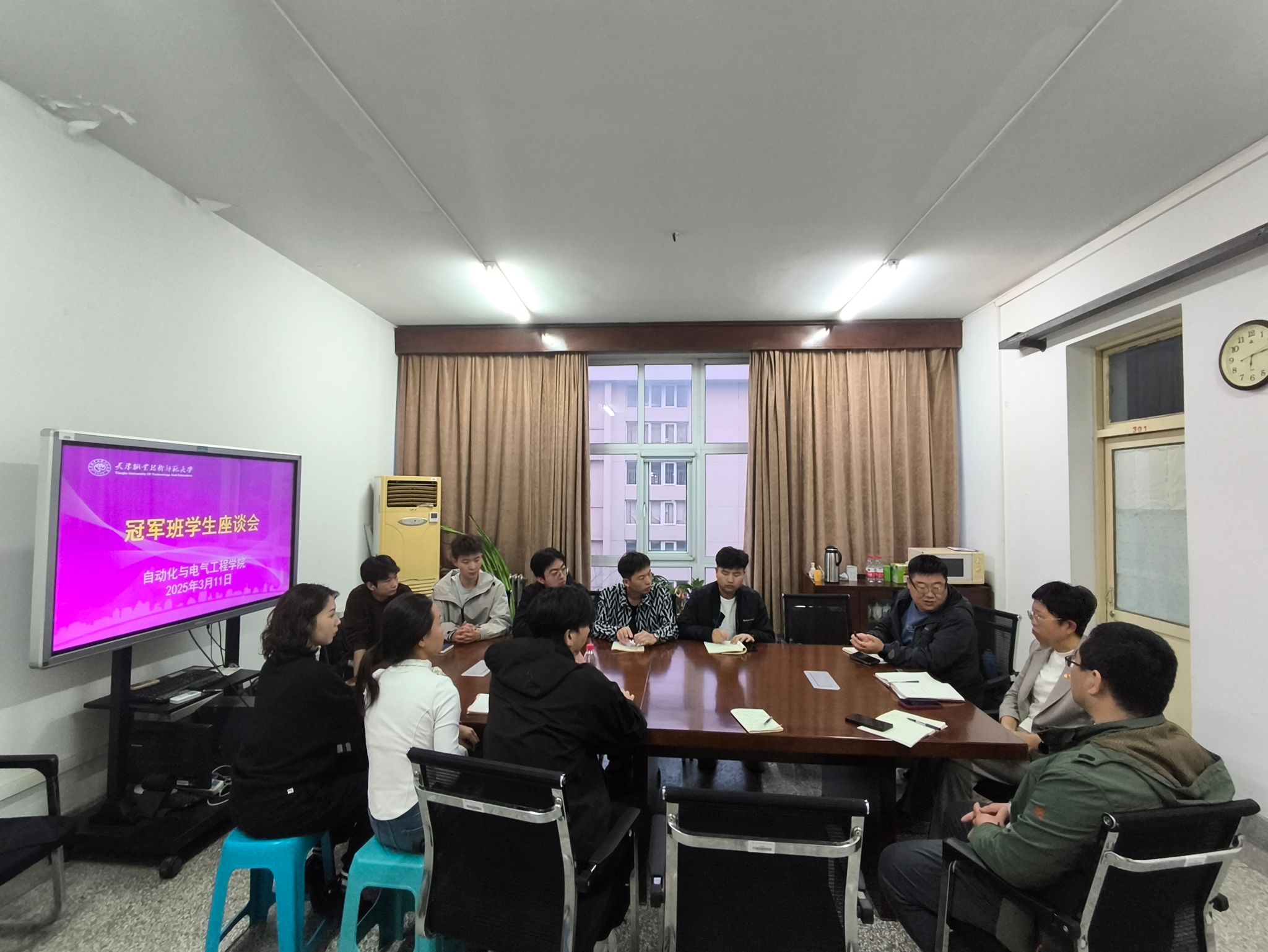 召开2024级冠军班师生座谈会。学院院长王冬霞、电气技术系主任郑桐、教师赵金涛、辅导员何安及冠军班学生代表参加会议。