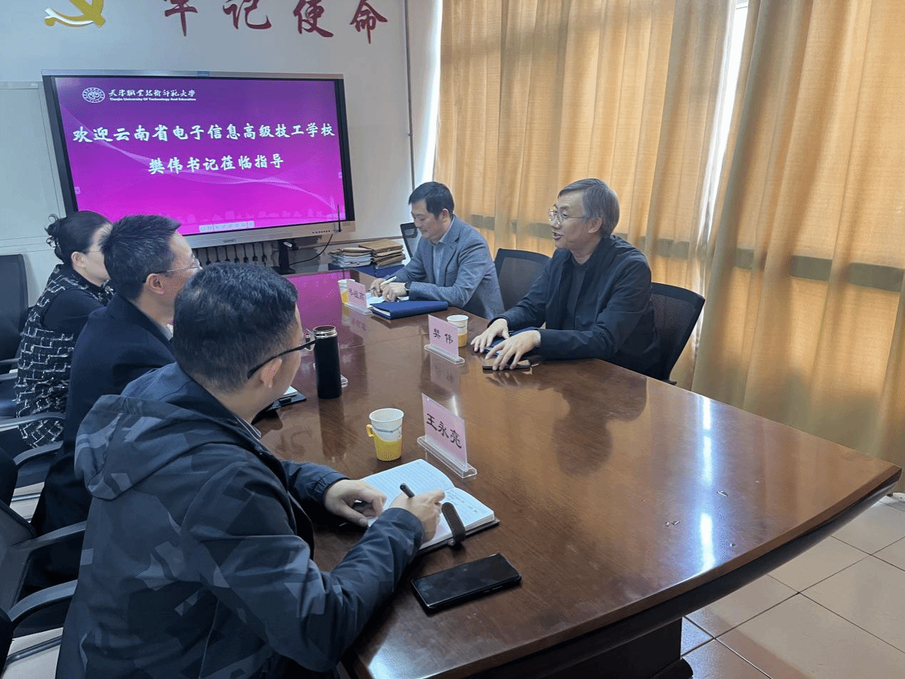 樊伟对我校人才培养、专业建设和产教融合等方面成效给予了高度评价,介绍了云南省电子信息高级技工学校的办学特色、专业布局、强师计划以及本年度拟招录学院毕业生的岗位需求。他表示,学校作为云南省技工院校电工电子专业联盟牵头单位,希望双方在师资培训、就业实习等方面进一步深化合作。韦祖高对母校的悉心培养表达了诚挚感谢,并分享了毕业后工作经历和取得的成绩。