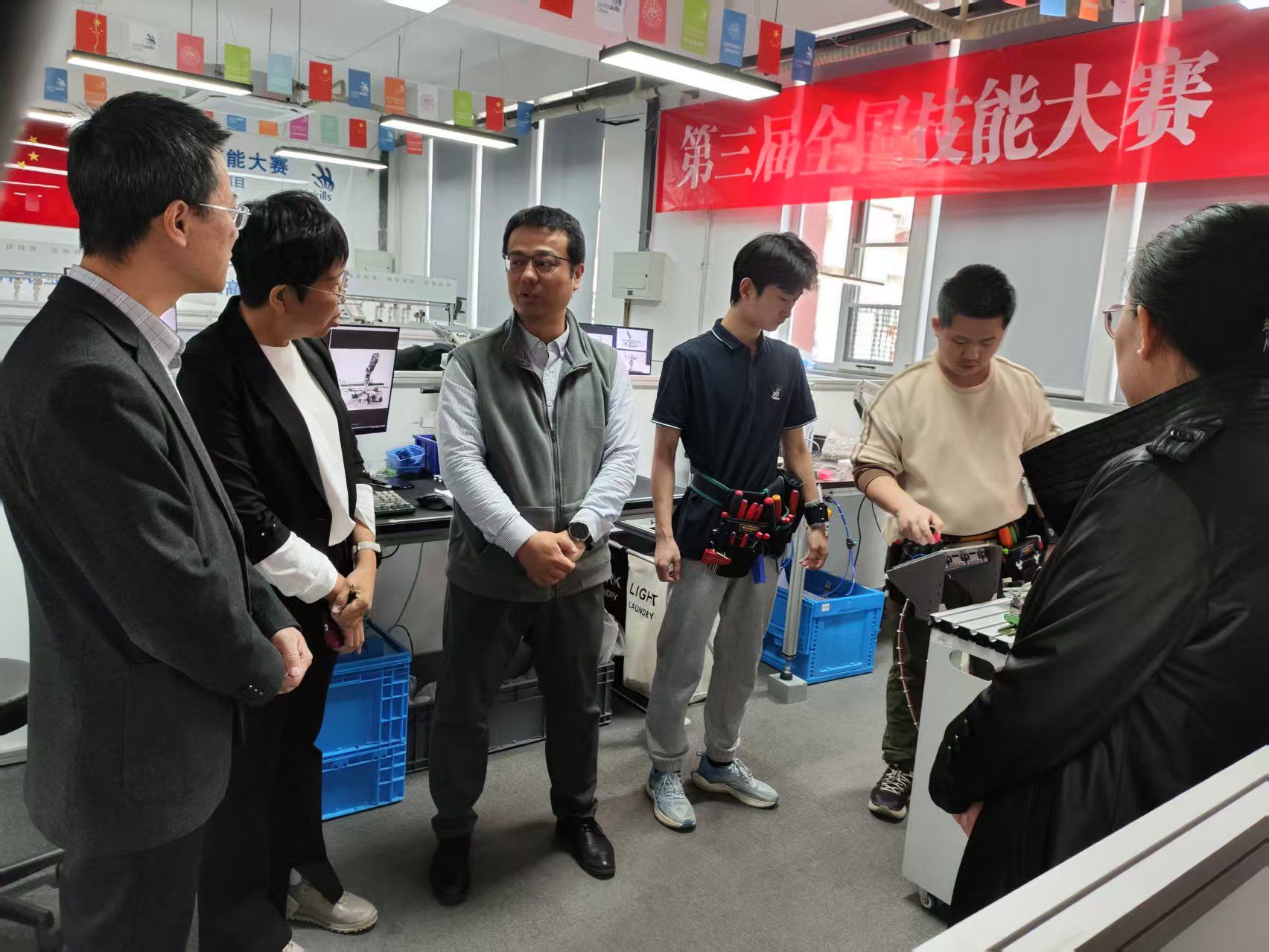 党委书记吴平、院长王冬霞、党委副书记程君、学工办主任兼团委书记王超一行前往学校工程实训中心、世界技能大赛机电一体化项目中国集训基地看望入选第三届全国职业技能大赛天津集训队的学院备赛选手,为他们加油鼓劲,送上暖心关怀。