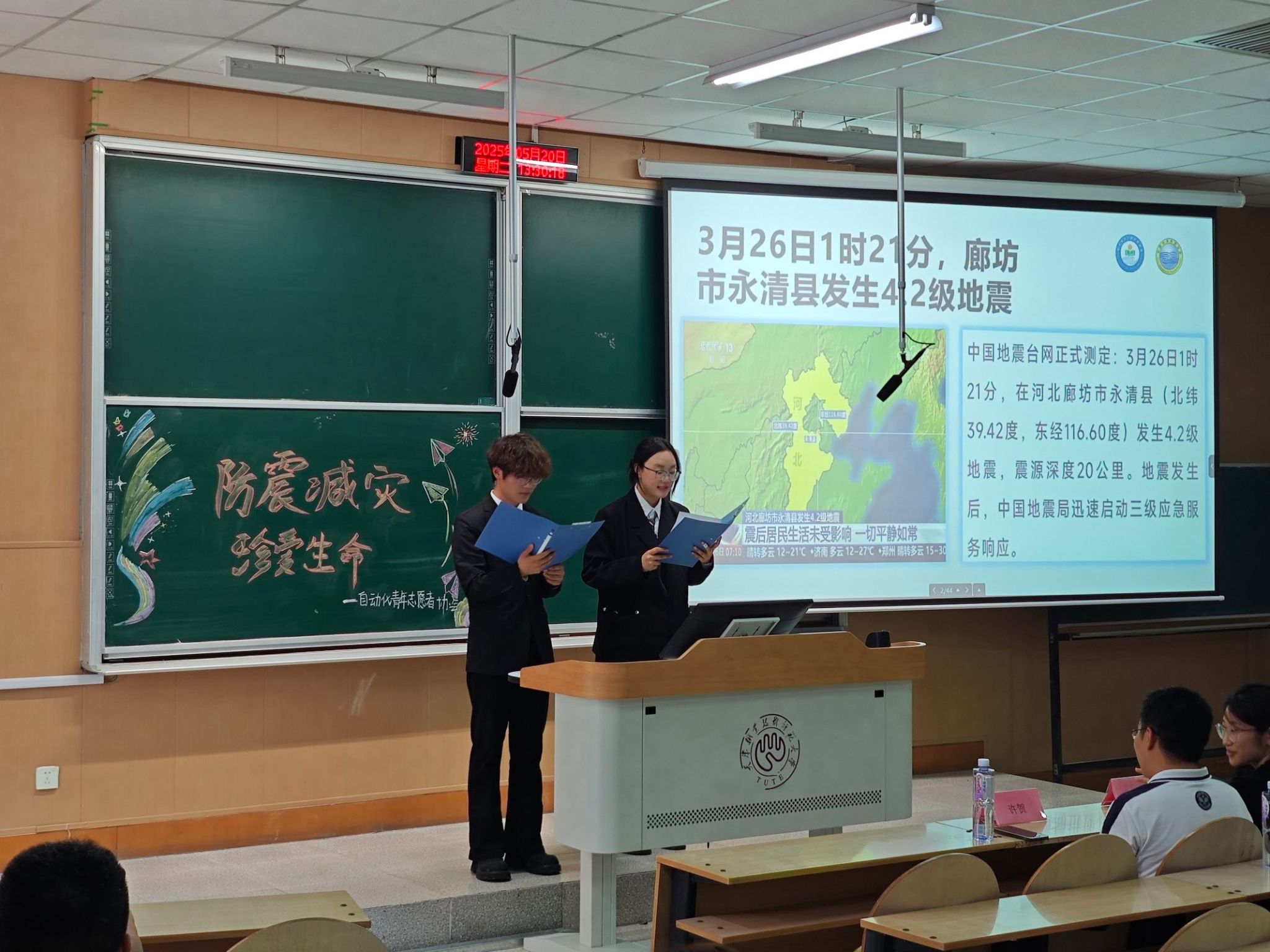 青年志愿者协会举办“防震减灾,珍爱生命”主题科普活动,特邀天津市地震局信息中心工程师许贺进行主讲,活动吸引了八十余名学生到场参加。