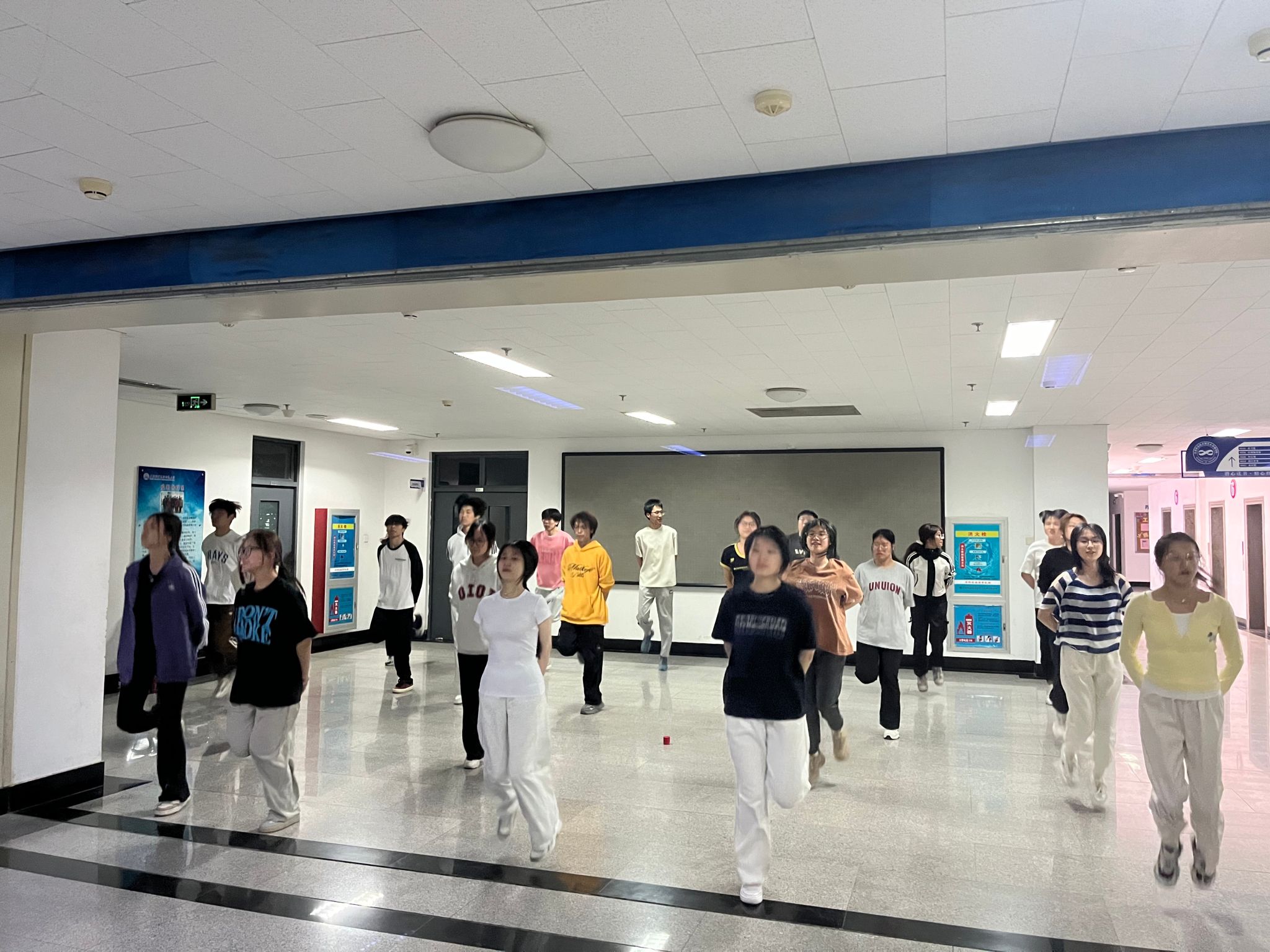 自接到参赛任务以来,学生们主动放弃课余休息时间,在指导教师的带领下,他们坚持每日早晚加训,膝盖上的淤青成为他们的“荣誉勋章”,浸透汗水的训练服见证了精益求精的态度。团长植斯斯表示,“每个八拍动作都要经过数十次调整,但我们坚信,细节处的完美才能展现真正的专业精神。”