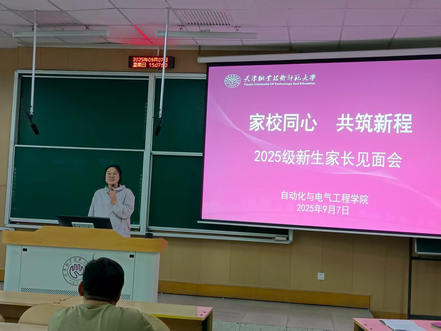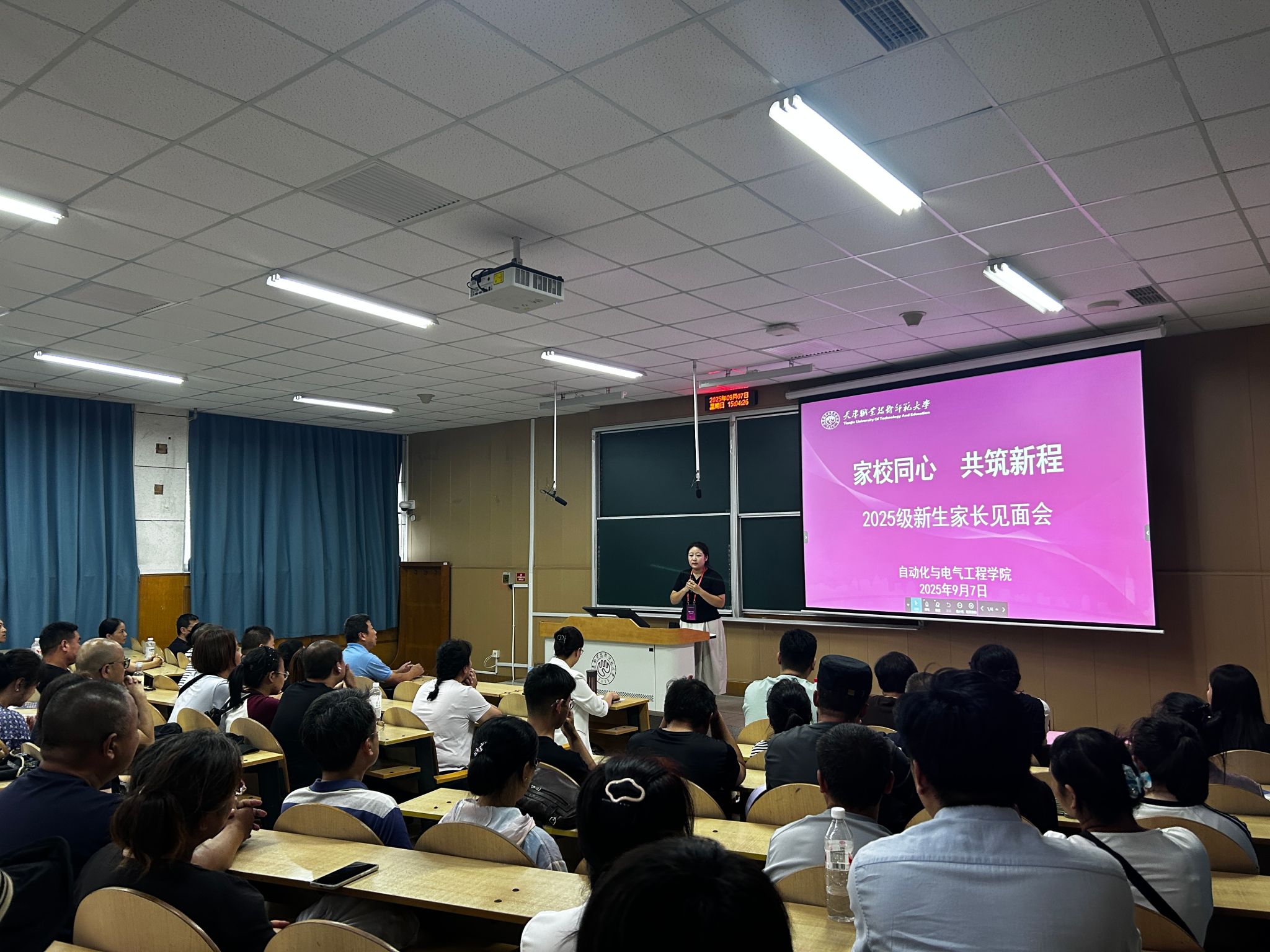 分别于阶教101、102召开2025级高中生源和技校生源本科生新生家长会。学院党委书记吴平、党委副书记程君、全体新生辅导员、新生班主任及200余名新生家长参加会议。