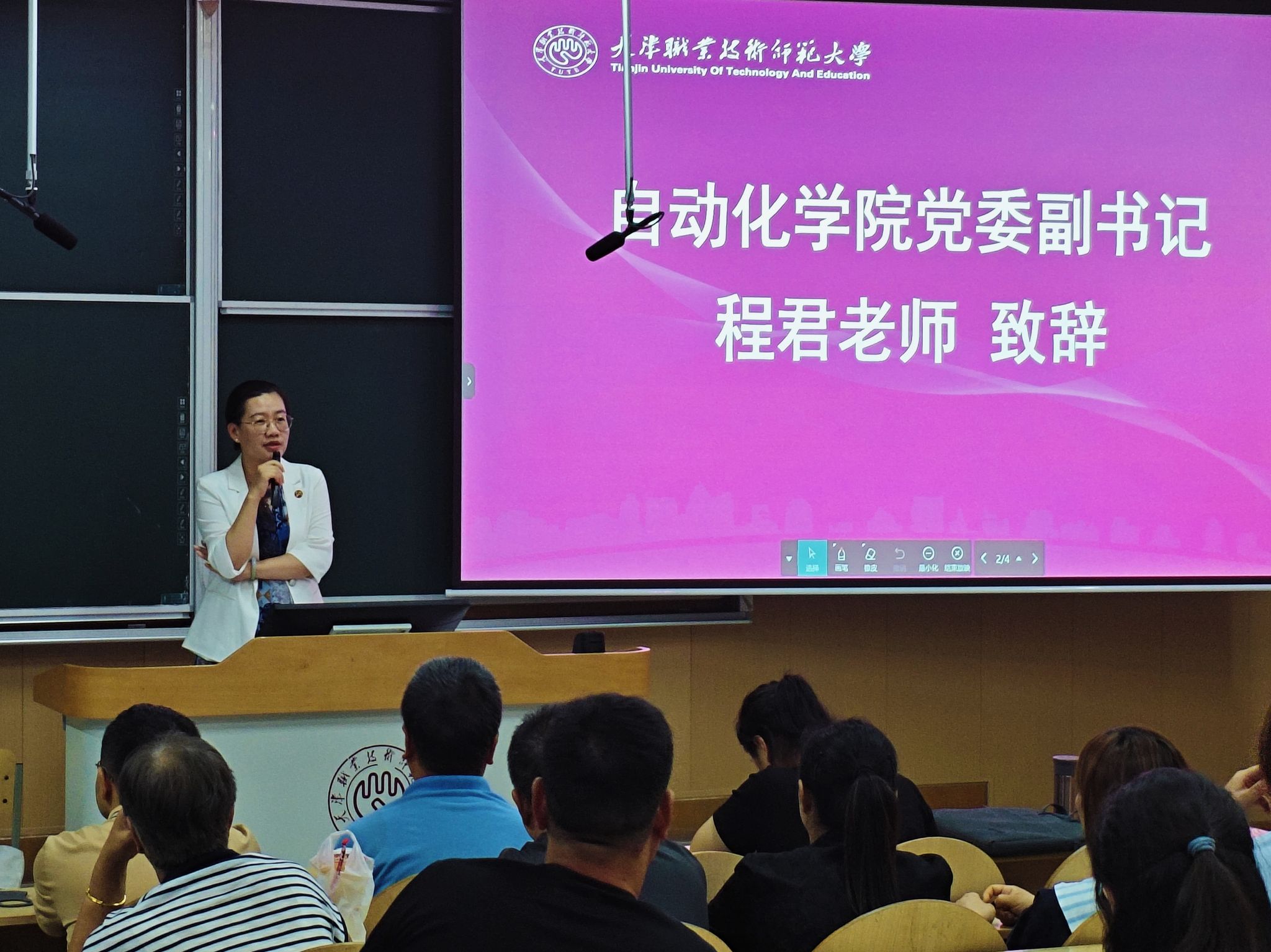程君表示见面会旨在搭建学院与家长间的沟通桥梁,帮助家长了解学校和学院情况,凝聚家校育人合力,为新生成长成才保驾护航。学院学生工作坚持“以爱伴成长、以责护青春”的工作理念,指导学生不断充实大学生活,同时希望家长把握“助、听、稳、合”四个关键点,共同助力学生成长。她表示,未来学院将建立常态化家校沟通机制,通过家长会、线上沟通群、学情反馈等方式,及时向家长传递学生在校情况,共同帮助学生制定科学的职业生涯规划,让梦想落地生根。